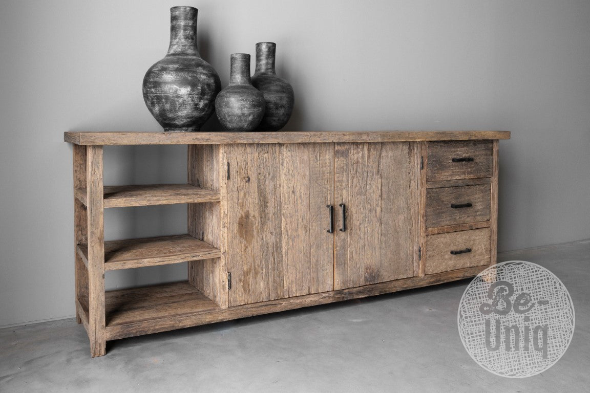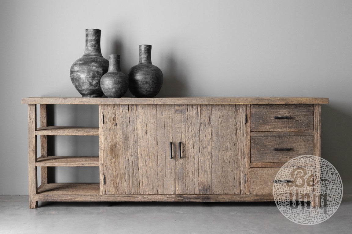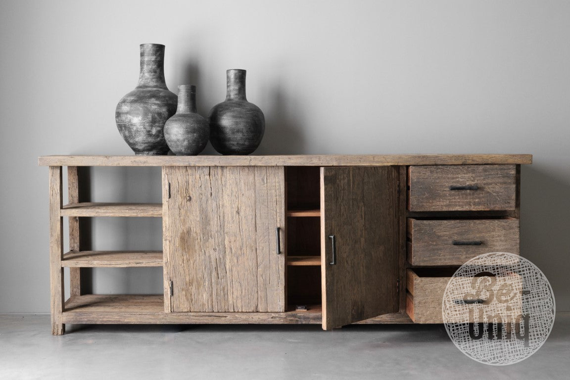 Landelijk oud houten dressoir badmeubel met deuren en lades